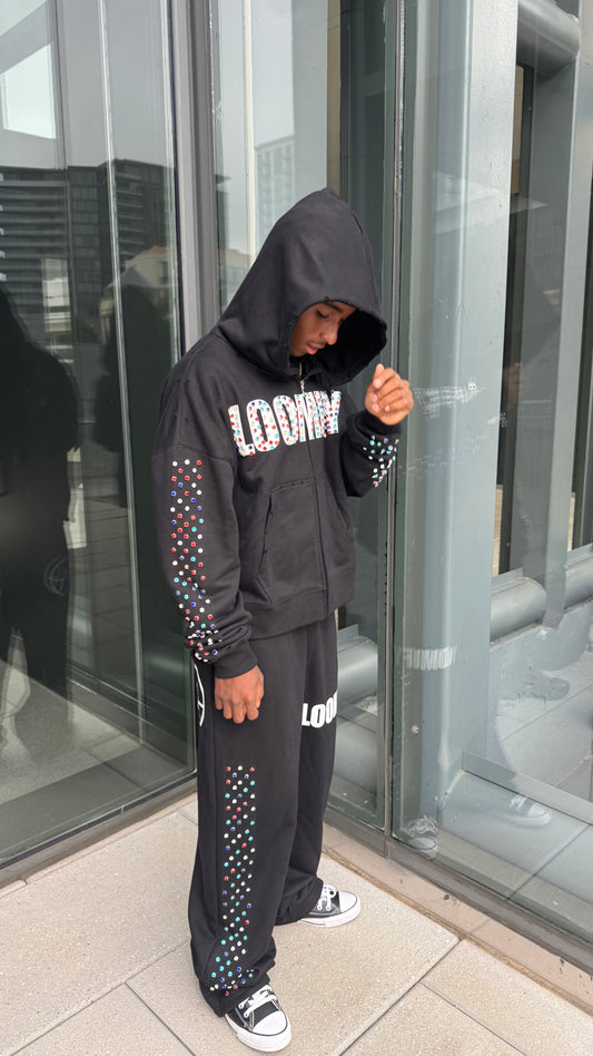 Black Crystal Baggy Sweatpants